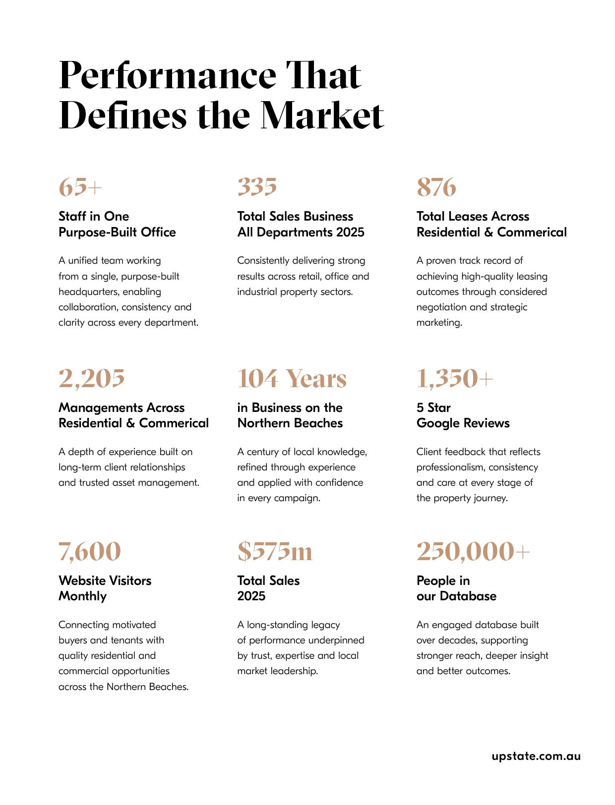 Upstate has grown to become the largest single office real estate agency on Sydney’s Northern Beaches, with more than 70 specialists across Residential Sales, Projects, Commercial, Property Management and Concierge.
